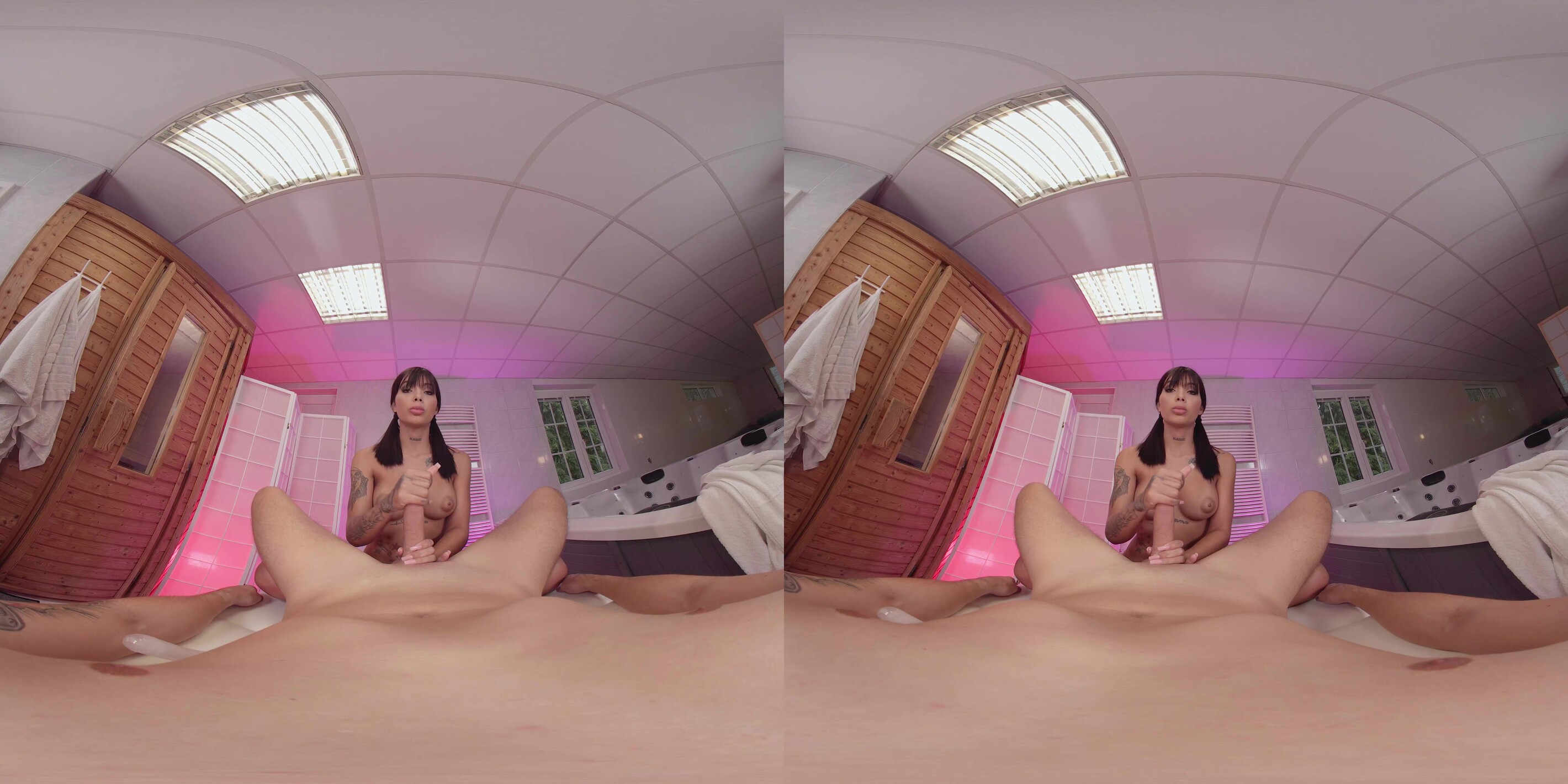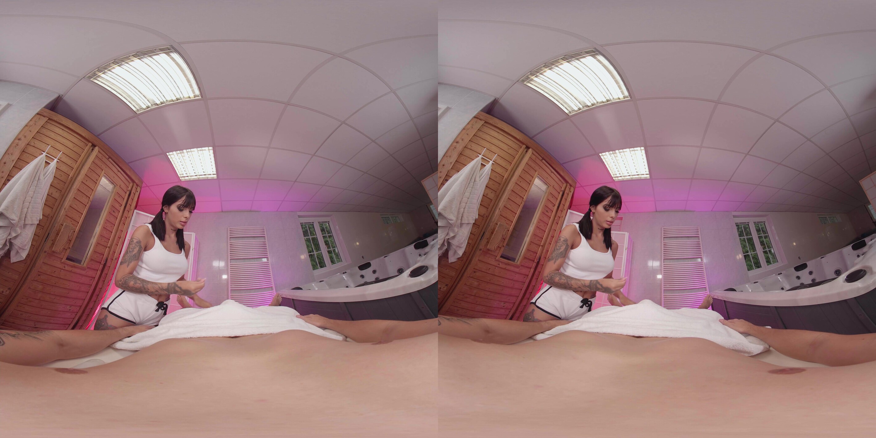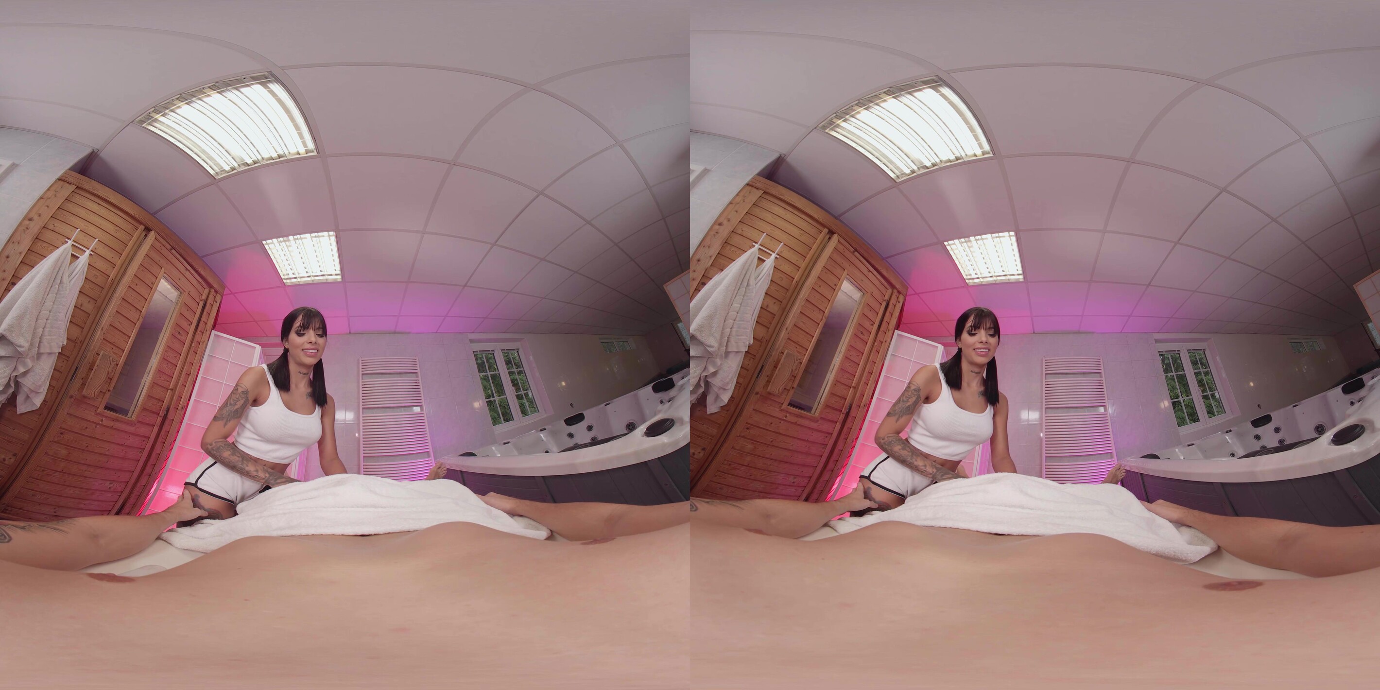 Athenea Rose ist Ihre Lieblingsmasseurin. Ihr sanfter Tonfall beruhigt dich, und auch wenn sie nur Spanisch spricht, hast du ein Verständnis, das über Worte hinausgeht. Heute legst du dich wie üblich auf die Massageliege, und Athenea sieht dich auf eine bestimmte Weise an... Du spürst, dass sie sich auf etwas mehr als eine gewöhnliche Massage einlässt. Du bemerkst auch, dass sie praktisch aus diesem engen weißen Oberteil herausschaut... Wow... Diese Titten sind riesig. Als sie dich am ganzen Körper berührt, spürst du, wie etwas unter dem Handtuch wächst, oh nein... Für den Bruchteil einer Sekunde hast du Angst, dass sie es bemerkt, bis sie unter das Handtuch greift und beginnt, deinen steinharten Schwanz sinnlich zu streicheln. Oh, sie hat es bemerkt, und es macht ihr Spaß. Athenea wird dir mehr als nur eine entspannende Massage geben, sie ist darauf bedacht, dass du diese Sitzung als außergewöhnlich zufriedener Kunde verlässt. Diese Latina VR Hottie wird dir den Knall deines Lebens verpassen. Wir alle wollten schon immer mal mit einer kolumbianischen Masseurin auf Tuchfühlung gehen, und jetzt hast du die Chance dazu. Du wirst diese Sitzung mit dem Gefühl verlassen, eine Million Dollar zu verdienen, und sie auch. Sie liebt es zu ficken, also hol dir dein Headset und erlebe Athenea Rose in diesem 8K VR-Porno jetzt!